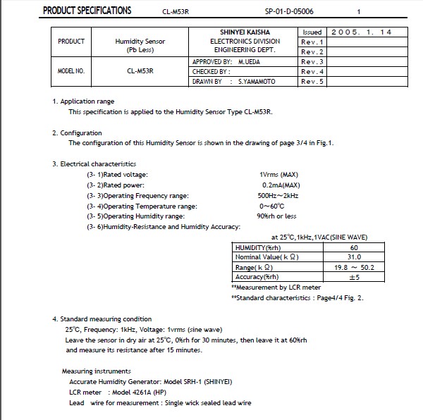 分類: 濕度傳感器